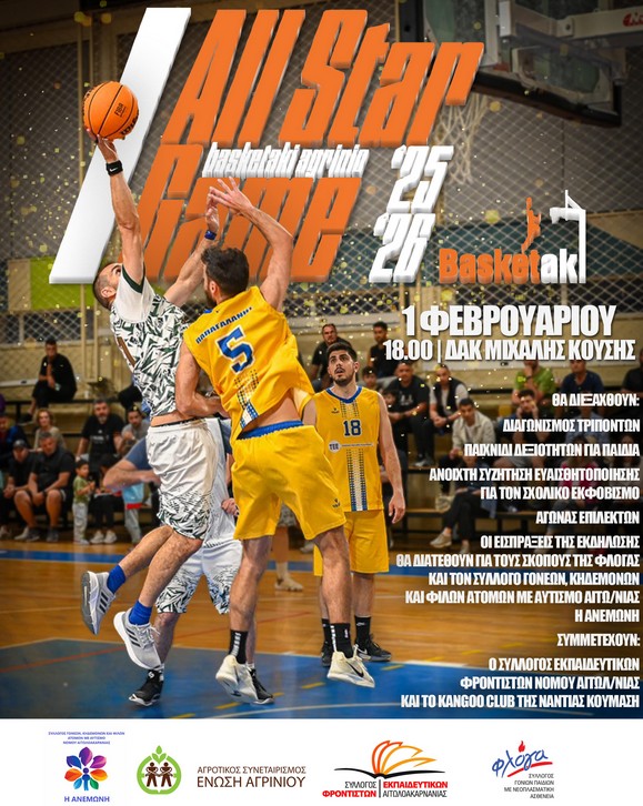 Το 4ο All Star Game του Basketaki Agrinio είναι γεγονός και φέτος αποκτά ιδιαίτερο χαρακτήρα, καθώς είναι αφιερωμένο στα παιδιά. Μέσα από μια διαφορετική και ουσιαστική δράση, η διοργάνωση στοχεύει να αναδείξει και να δώσει φωνή σε ένα σημαντικό κοινωνικό ζήτημα: τον