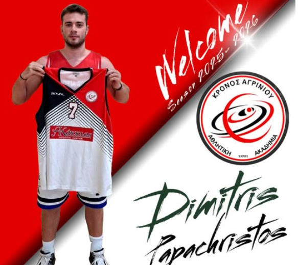 H ανακοίνωση της ομάδας του Αγρινίου: Η Αθλητική Ακαδημία Κρόνος Αγρινίου ανακοινώνει την έναρξη συνεργασίας της με τον αθλητή Δημήτρη Παπαχρήστο για την σεζόν 2025-2026.