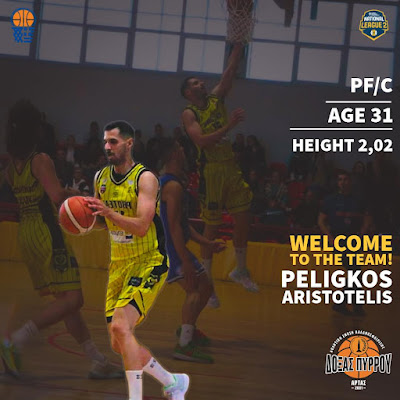 Η Α.Ε. Δόξας Πύρρου Άρτας 2001 ανακοινώνει την απόκτηση του 31χρονου, ύψους 2.02μ, power forward/ center Αριστοτέλη Πελίγκου.