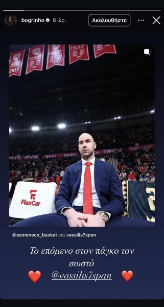 Ο “V-Span” πήγε για πρώτη φορά ως αντίπαλος στα… παλιά του λημέρια, σε επίπεδο Euroleague, με τον άλλοτε συμπαίκτη του στον Ολυμπιακό, Γιώργο Μπόγρη να ποστάρει μία φωτογραφία του, αναφέροντας με νόημα: «Το επόμενο στον πάγκο τον σωστό».