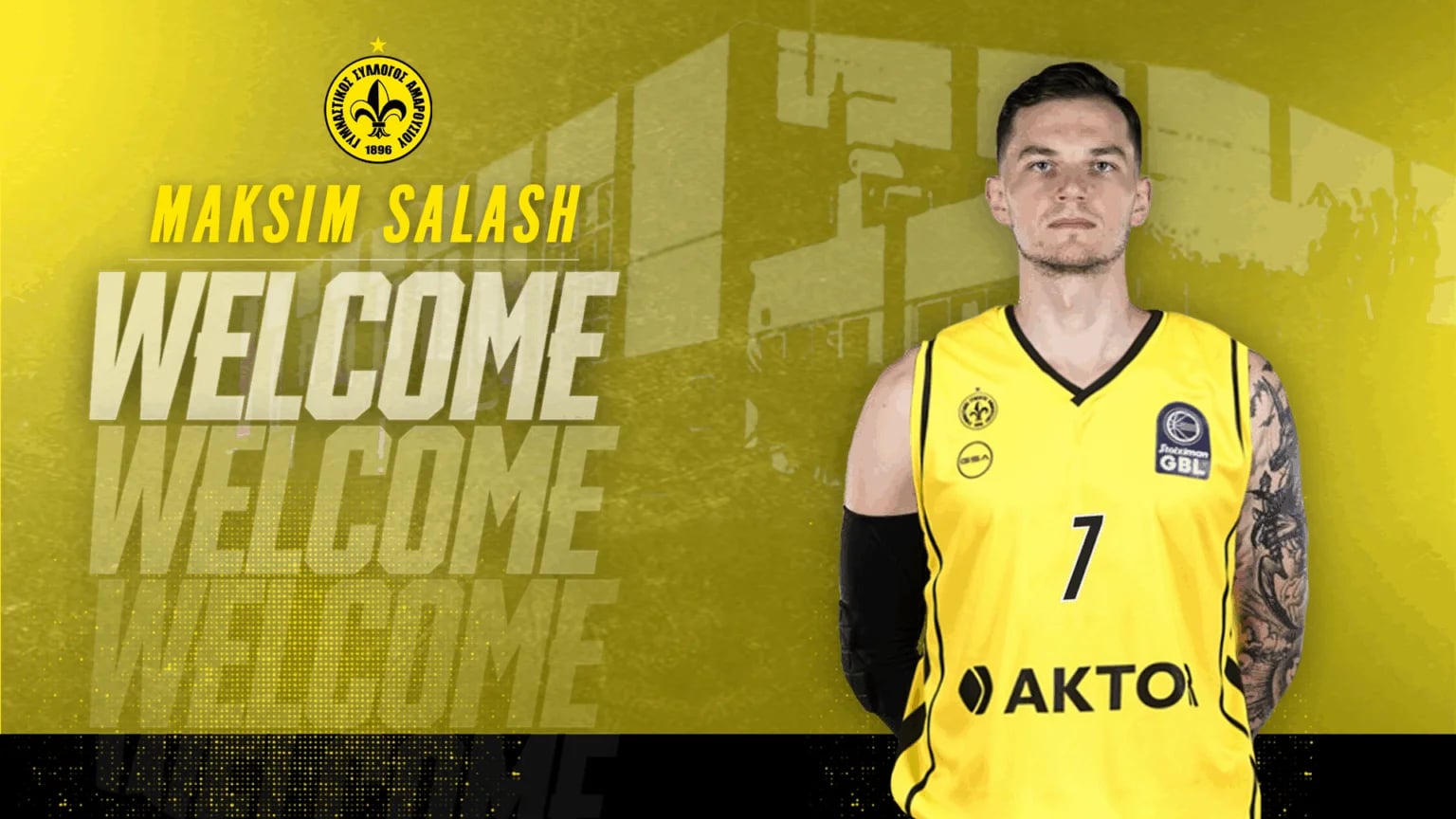 Η ΚΑΕ Γ.Σ. ΑΜΑΡΟΥΣΙΟΥ 1896 ανακοινώνει την απόκτηση του Λευκορώσου φόργουρντ/ σέντερ, Μαξίμ Σαλάς (29, 2.08), για τα επόμενα δυο χρόνια. Είναι ένας παίκτης που χαρακτηρίζεται από υψηλό μπάσκετικό IQ και μεγάλη ευρωπαϊκή εμπειρία με δεδομένο ότι έχει παίξει σε 5 διαφορετικές χώρες. Έχει κατακτήσει το BCL (2021, Burgos), ενώ την τελευταία διετία αγωνίστηκε στην γαλλική Bourg με την οποία συμμετείχε στο Eurocup. Την περσινή σεζόν , στο γαλλικό πρωτάθλημα είχε απολογισμό 9,8 πόντους (45,3 % δίποντα, 30% τρίποντα 79, 5 βολές), 3,9 ριμπάουντ σε 30 αγώνες της κανονικής περιόδου με μέσο όρο συμμετοχής 21,1 λεπτά. Στο Eurocup είχε απολογισμό 11.1 πόντους (48% δίποντα, 40 % τρίποντα, 80, 4 % βολές), 4,3 ριμπάουντ και 1 ασίστ σε 18 αγώνες με μέσο όρο συμμετοχής 22,8 λεπτά. Ο Σαλάς είναι ο έκτος ξένος της ομάδας μας.