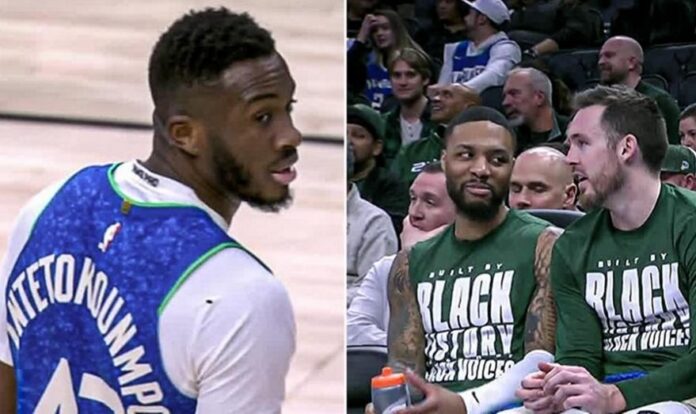 Ο διαιτητής Σκοτ Φόστερ καταλόγισε παράβαση 8 δευτερολέπτων στον διεθνή άσο, με τον Ντέμιαν Λίλαρντ να αντιδρά με ένα πονηρό χαμόγελο στον πάγκο.