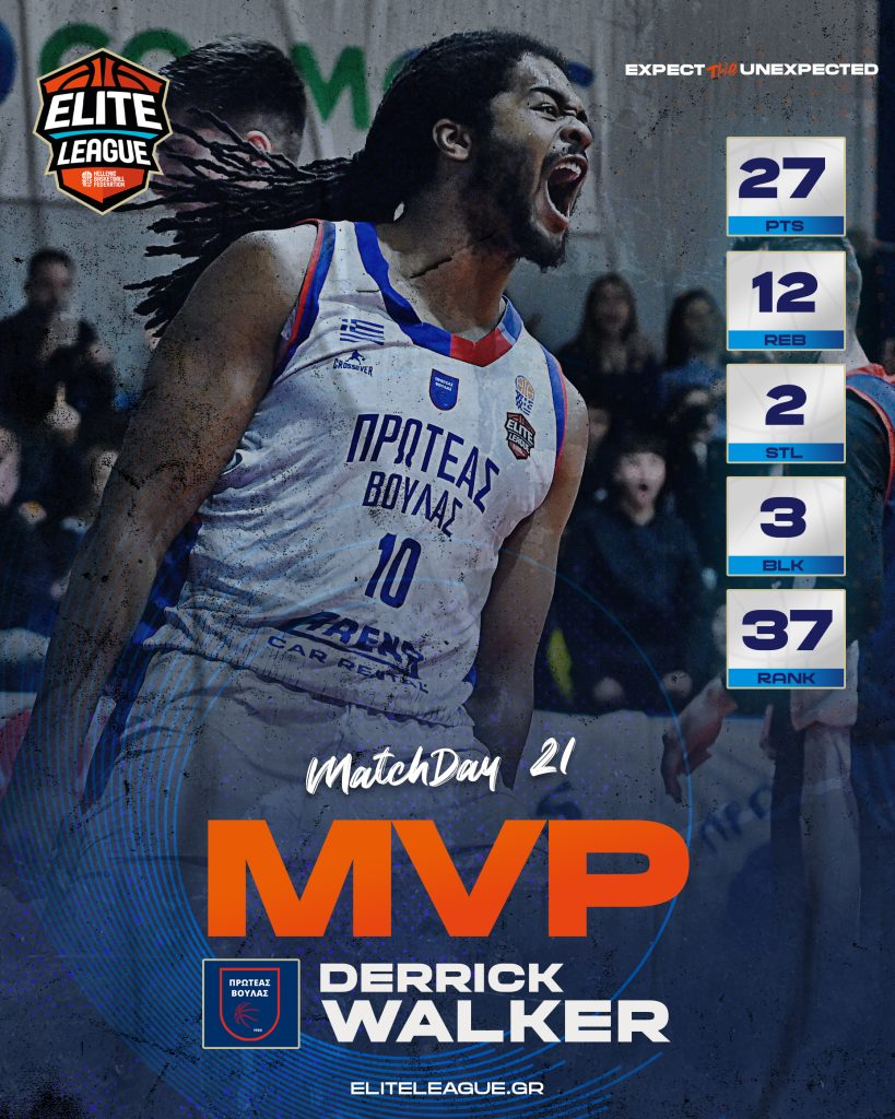 Ντέρικ Γουόκερ (Πρωτέας Βούλας): 27 πόντοι-12 ριμπάουντ