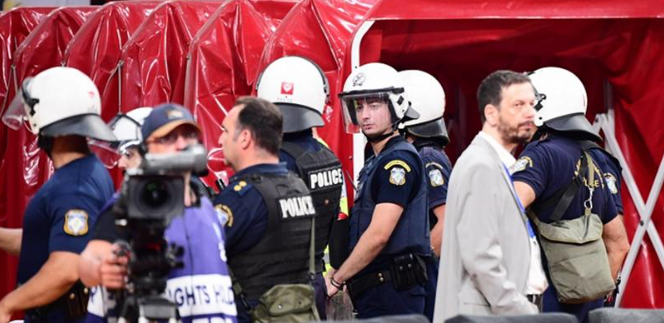 Ένταση σημειώθηκε στο φινάλε της αναμέτρησης του Ολυμπιακού με τη Χάποελ Τελ Αβίβ στο ΣΕΦ, όταν οπαδός ύψωσε σημαία της Παλαιστίνης πάνω από τη φυσούνα, τη στιγμή που οι παίκτες της ισραηλινής ομάδας κατευθύνονταν προς τα αποδυτήρια.