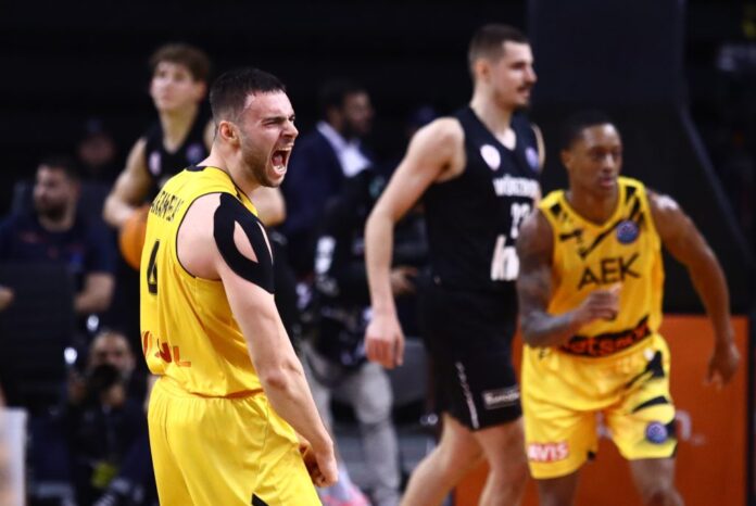 Η ΑΕΚ επικράτησε με της γερμανικής Βούρτζμπουργκ και έκανε το 4/4 στον 1ο όμιλο της φάσης των «16» του Basketball Champions League, παίρνοντας, παράλληλα, την πρόκριση για το top-8 της διοργάνωσης.
