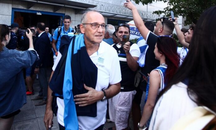 «Ευχαριστώ πάρα πολύ για την παρουσία σας και την υποδοχή. Από την πρώτη στιγμή που ξεκίνησε αυτή η αποστολή και οι παίκτες και οι προπονητές πίστεψαν σε αυτό μετάλλιο. Το πίστεψαν και γύρισαν με αυτό. Αυτό το μετάλλιο το αφιερώνουμε σε όλους εσάς, σε όλο τον κόσμο. Τα μετάλλια τα κερδίζουν οι αθλητές και οι προπονητές, αλλά αφιερώνονται στον κόσμο. Ο κόσμος είναι αυτός που είναι η πεμπτουσία.