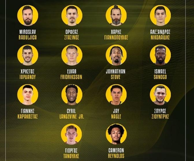 Από την περσινή σύνθεση παρέμειναν πέντε παίκτες: Στασινός (24, 1.83), Νικολαϊδης (22, 1.89), Γιαννόπουλος (35, 2.01), Ιορδάνου (26, 1.96), Ραντούλιτσα (36, 2.13) και προστέθηκαν εννέα νέα πρόσωπα. Πρόκειται για τους : Φρίντρικσον (30, 1.83), Στόουβ (29, 1.93), Σανόγκο (28, 2.03), Νάγκλ(24,2.06), Ρέινολντς, (28, 2.02), Λάνγκεβάιν (27, 2.03), Καρακώστα (20, 1.90), Σιούντρη (24.1.94) και Τανούλη(22, 2.10).