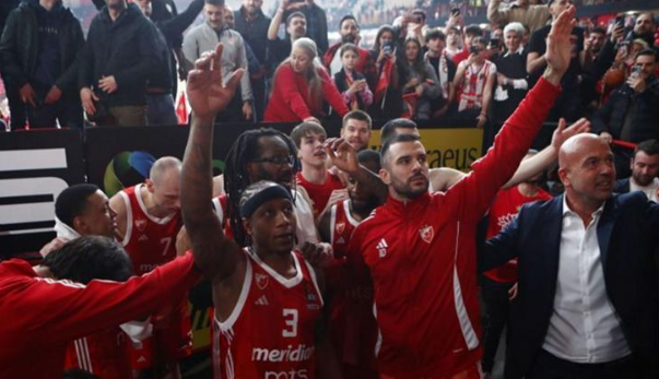 Οι παίκτες του Ερυθρού Αστέρα τραγούδησαν με τους φίλους του Ολυμπιακού