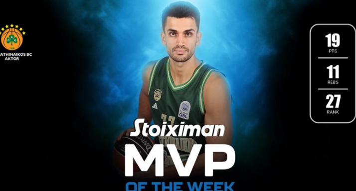 Έτσι συγκέντρωσε 27 βαθμούς στο σύστημα αξιολόγησης και κέρδισε το βραβείο του πολυτιμότερου στους αγώνες που έγιναν το Σαββατοκύριακο για το πρωτάθλημα.
